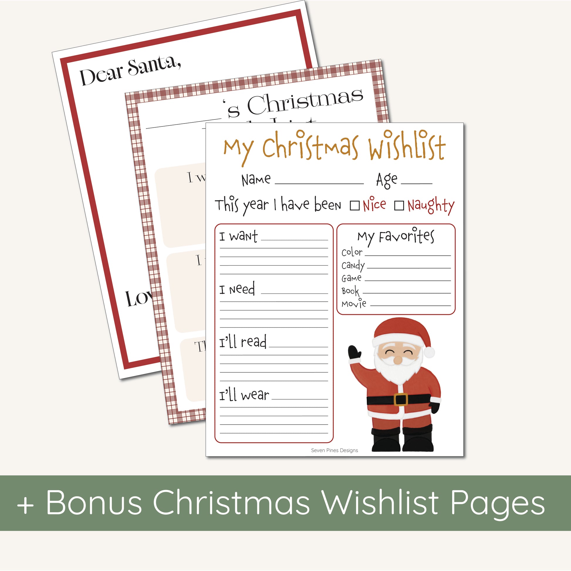 - Bonus: 3 different styles of Christmas Wishlist pages for your little ones to fill out and to easily share for gift exchanges